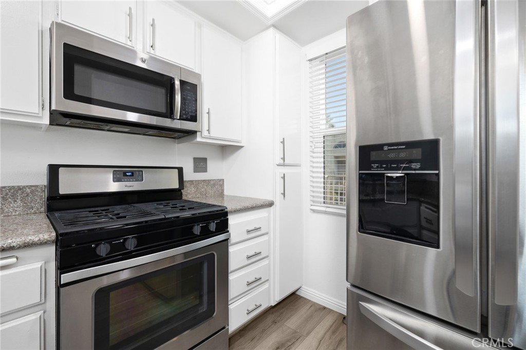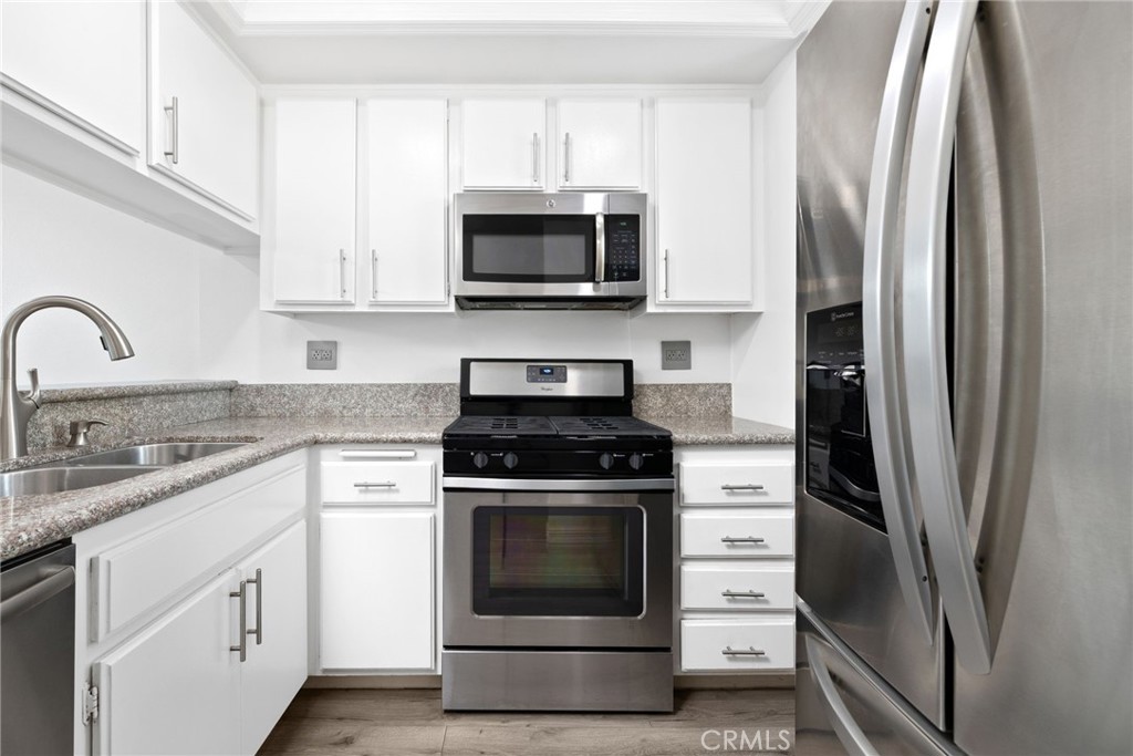 Welcome to 445 W. 6th Street, Unit 409 -- Live in smart luxury in DTLB! VA and FHA Approved! This beautifully updated top-floor corner unit has it all: * 2 spacious bedrooms * 2 bathrooms * 2 dedicated parking spaces + 2 guest passes * Central A/C and heater with Google Nest thermostat * In-unit washer + dryer * Smart lighting * Dual-pane tinted windows * Brand new electrical circuit box * Designer light switches and outlets * Dedicated electrical circuit and in wall Cat6 ethernet cables for professionals working from home * Private balcony with storage and electrical outlet. Community highlights: * Smart entry system with cameras throughout property * Jacuzzi, community room, and BBQ grills in the peaceful courtyard. The open floor plan has vaulted ceilings and an updated kitchen that opens into the living area. This is perfect for entertaining guests where you'll be able to control temperature and lighting from your smart phone from the comfort of your couch. The Google Nest thermostat keeps the brand new A/C heating system at just the perfect temperature so you don't have to keep adjusting it. The windows help to keep your place quiet and luxurious, keeping you relaxed and saving money on the electric bill. Your home office has a dedicated power circuit and lightning fast internet connections so every meeting or project is quickly concluded without complications. Both bathrooms have soaring rainfall showers, waterfall faucets, with a built-in exhaust fan and heater (not common for this area). These features make the bathroom more comfortable - bringing the spa home to you. Moments from Shoreline Village, The Pike Outlets, waterfront dining, coffee shops, nightlife, and Long Beach Airport -- with easy freeway access and an exciting future ahead as the Shoreline Amphitheater and Hard Rock Hotel take shape and remember...the 2028 Olympics are coming! Move-in-ready, connected, and perfectly positioned for a vibrant downtown lifestyle -- come claim the smartest luxury condo!