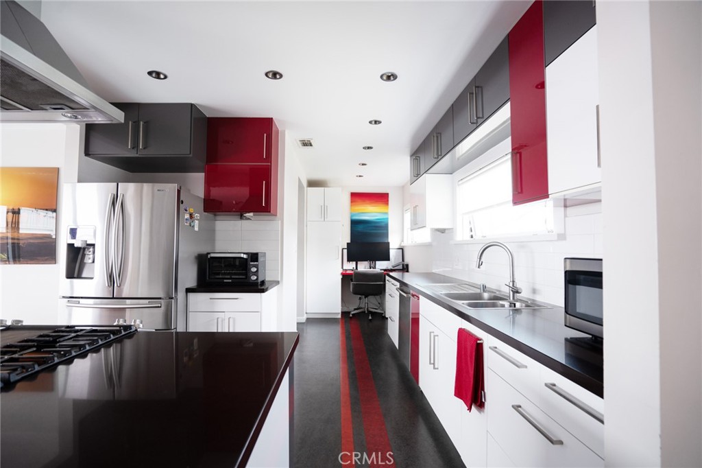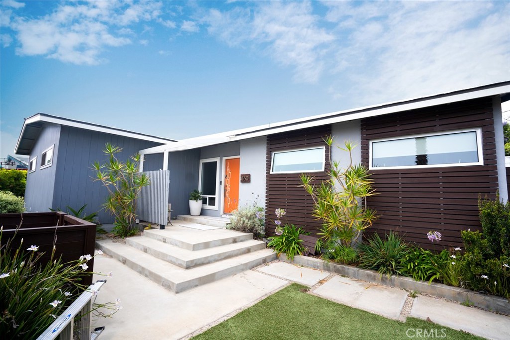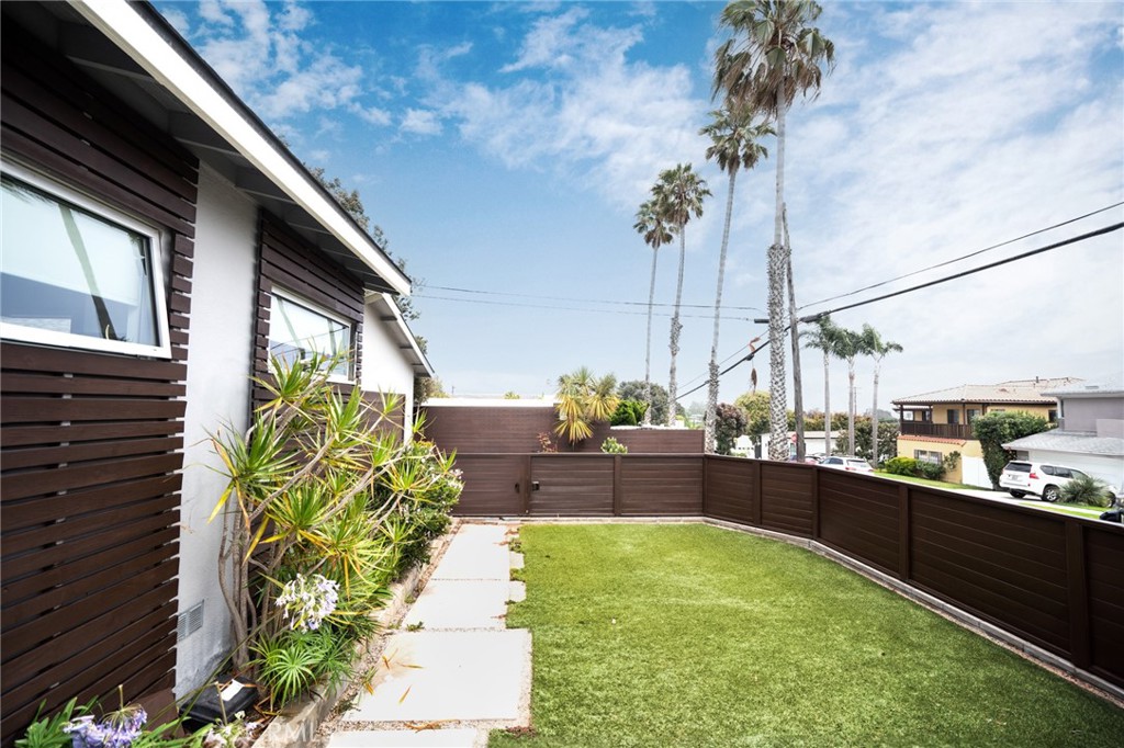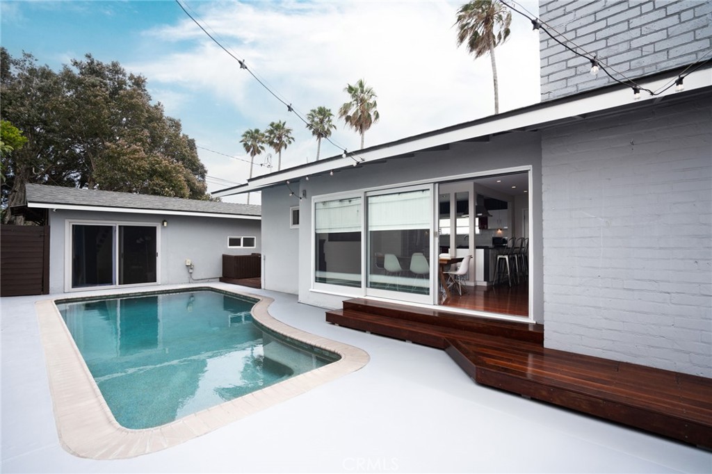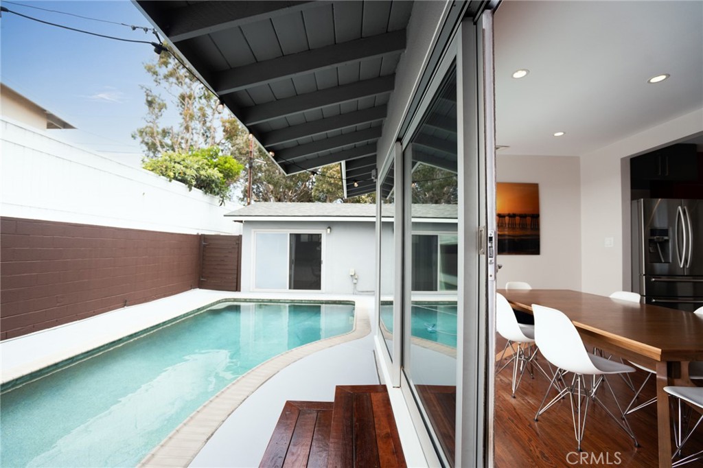 Move-in ready, Mid Century modern retreat with an added flex room that can be a 4th bedroom. Interestingly, it's closer to the beach than most Tree section homes. With it's charming exterior, fabulous pool, and expansive gated outdoor space wraps around the residence, offering two private yards. Fleetwood doors slide easily and create indoor-outdoor living at it's best. The interior has an excellent layout with excellent options down the road. Perfect and simple project to add on square footage, or if you build up, there is a great ocean view and all the advantages a corner lot has to give.